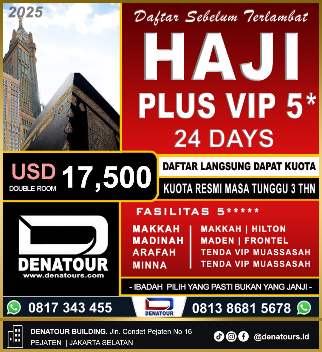 Sebagai Travel Perintis Tour Haji dan Umroh Mancanegara di Indonesia. Denatour menyediakan paket Haji dan Umroh dengan kualitas yang terbaik