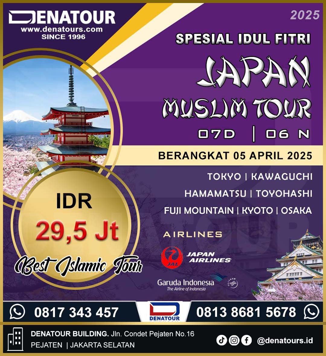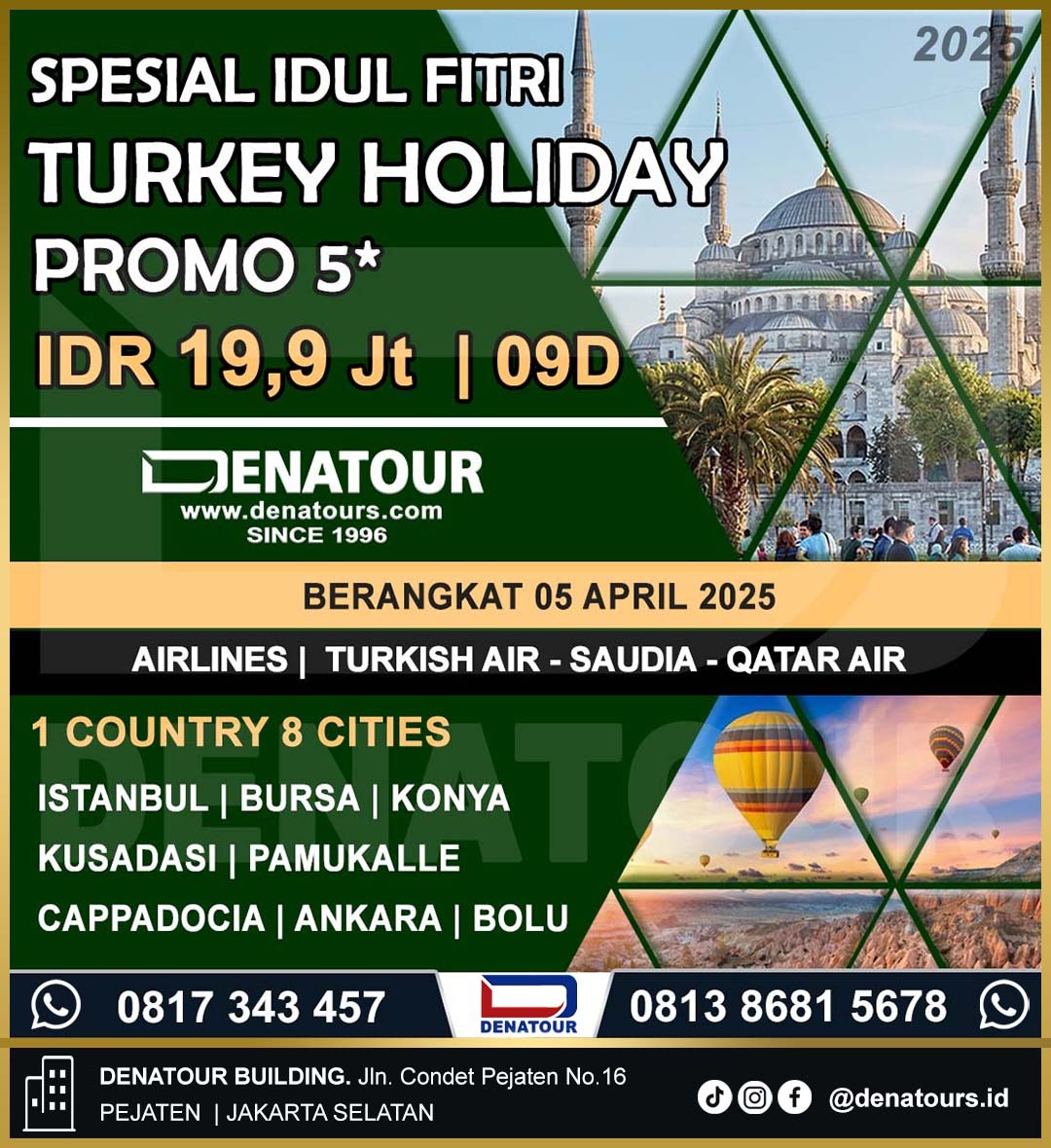 Berdiri sejak tahun 1996 sebagai Perintis Tour Haji dan Umroh Mancanegara. Dengan usia yang cukup dewasa Denatour tetap konsisten sebagai perusahaan jasa Tour Haji dan Umroh