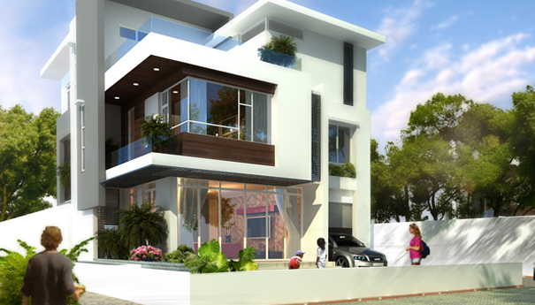 Phối cảnh mặt tiền biệt thự cao cấp hiện đại